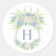 Adesivo Redondo Aquarela Azul Floral e Branco - Hydrangea Crest