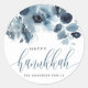 Adesivo Redondo Aquarela Azul Flores Felizes Caligrafia Hanukkah