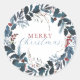 Adesivo Redondo Aquarela de Natal Azul Verde Folhas de Azevinho