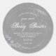 Marca de cor d'água redonda, cor de verdinho floral, com flores lavandas roxas sobre fundo de cinza. Etiqueta adequada para o proprietário da empresa, autocolante que pode ser usado para manteiga corporal, esfregar, bomba de banho, presentes personalizados de casamento, velas perfumadas ou outras.