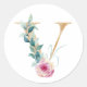 Adesivo Redondo Aquarela letra V com rosas. Personalize adicionand