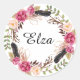 Adesivo personalizado de presente Aquarela Rosa Flores e Penas Elegantes