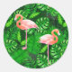 Design de padrão aquoso com aves flamingas e folhas tropicais.