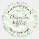 Pintura aquarela elegante de folhas verdes, videiras e bagas rosa em um fundo verde claro, esses adesivos estão prontos para personalizar para qualquer coisa "DA COZINHA DE" e "FEITO COM AMOR" junto com seu nome ou qualquer texto que você escolher. Use o link Personalizar ainda mais para adicionar ou excluir texto, alinhar texto, alterar a fonte, cores da fonte e layout.