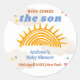 comemore e aproveite o chá de bebê com o tema do chá de bebê ensolarado com o nosso lindo e adorável convite para o chá de bebê, a festa do chá de bebê, o sinal de boas-vindas do chá de bebê, o favor do chá de bebê. Recurso de design com raio-d'água do sol, ilustração brilhante colorida de estrela de festa. Aqui vem o tema do filho perfeito para o chuveiro do bebê. você pode personalizar seu próprio texto e cor.