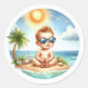 Adicione um toque de acabamento ensolarado à sua papelaria de chá de fraldas com este aqui vem o adesivo do selo do Son envelope. Apresentando um bebê ao estilo retrô, soltando-se sob um sol ouro numa ilha tropical, este adesivo vibrante é perfeito para selar convites, cartas obrigado-você ou decorando bolsas de favor. Um detalhe alegre que gravatas maravilhosamente com a sua celebração ensolarada e temerária da praia.