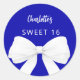 Um fundo azul real colorido. Decorado com um grande arco branco. Personalize e adicione um nome. Script de estilo manuscrito branco.