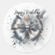 Este adesivo delicioso apresenta um arco metálico prateado em coquete contra um fundo luminoso embelezado com pontos e salpicos de aquarela, acentuando a saudação de aniversário. O na moda, autocolante com tema de arco, adiciona um toque de elegância a qualquer presente ou pacote.