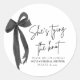 Adicione um toque elegante aos seus brindes de chuveiro de noiva com nosso Adesivo Redondo Clássico Black Pink Bow She's Tying the Knot! Com um design preto chique e um laço rosa feminino, esse adesivo elegante é perfeito para selar envelopes, decorar sacolas de presente ou adicionar um toque pessoal ao seu evento. Personalize-o para combinar com o seu tema e faça do seu chuveiro de noiva ainda mais memorável com esses adesivos redondos encantadores! 🎀🖤