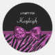 Adesivo Redondo Arco Glitz De Impressão De Zebra Roxa Chic Com Nom