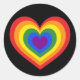 O coração colorido do arco-íris apresenta corações concêntricos começando com vermelho, cor de laranja, amarelo, verde, azul e violeta no centro em um fundo preto. Celebre seu orgulho, apoio ou amor LGBTQ aos arco-íris com talento para decorar seus presentes e equipamentos. Copyright ©Claire E. Skinner, Todos os direitos reservados.