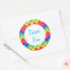 Um padrão tradicional do arco-íris decora esses adesivos Obrigado. Use estes adesivos festivos para um negócio, festa de aniversário, etc... O design é de arte original.