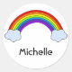 Um arco-íris emerge das nuvens neste adesivo com um nome abaixo em letras negras. Personalize com seu próprio nome ou outro texto. Personalizar para alterar o estilo e a cor da fonte.