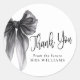 Elegantes adesivos de agradecimento mostrando arco de aquarela preta em estilo coquette. Perfeito para celebrações de chá de noiva com tema 'Ela está dando o nó'.