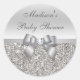 Etiquetas de Chá de fraldas prateado personalizadas e elegantes, para favores ou selos de envelopes, com um lindo padrão de sequências prateadas, um arco e fita prateados brilhantes e uma joia bonito de mistura de diamante impressa. O texto, a fonte e a cor da fonte podem ser personalizados. Se precisar de ajuda para personalizar seu produto, entre em contato comigo através da minha loja. Ficarei feliz em ajudar. Tenho produtos correspondentes na minha loja.