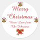 Escreva a sua própria mensagem nestes adesivos de Feliz Natal personalizados. o design apresenta arco vermelho e ouro e sinos. Veja outras designs de Natal na coleção "Cheers of Christmas" (Saúde do Natal).