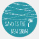 Esta divertida design de férias de clima quente, originária da Flórida, é claro, apresenta um ícone de palmeira giro, tipografia branca, e o sentimento "Areia é a Nova Neve". Está definido em um fundo azul profundo / teal /aqua com luzes piscando. É o toque final perfeito para suas malas e pacotes de feriados tropicais! Escolha a ferramenta personalizar para alterar a cor do plano de fundo para qualquer uma de suas escolhas, se o teal profundo /aqua não se adequar às suas necessidades.