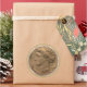 Um autocolante redondo com a imagem de um antigo tetradrachm síracusano com a cabeça da ninfa Arethusa cercada por quatro golfinhos nadadores com uma borda prateada brilhante em ouro. Veja confetti correspondente, etiqueta de favor e papel de empacotamento. Veja toda a coleção Toga Sticker nos CONVITES | Seção Stickers & Labels