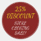 Este design de adesivo redondo apresenta as mensagens "STORE CLOSING SALE!" e "25% DISCOUNT". Pode ser usado em uma loja de varejo para marcar que um item foi descontado. O valor do desconto pode ser personalizado.