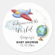 Adesivo Redondo Around The World Map Airplane Boy Baby Shower