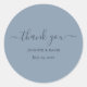 Obrigado de casamento azul empoeirado personalizado moderno que você usa com o roteiro moderno. Personalizar facilmente online. Itens correspondentes disponíveis para complementar esses adesivos azuis minimalistas.