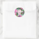 Adesivo Redondo Arranjo de Flores Rosa Buquê Obrigado