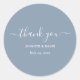 Obrigado de casamento azul empoeirado personalizado moderno que você usa com o roteiro moderno. Personalizar facilmente online. Itens correspondentes disponíveis para complementar esses adesivos azuis minimalistas.
