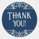 Adesivo Redondo Art Deco Filigree | Prata e Marinho Azul Obrigado