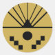 Um sol negro de deco de arte nasce num campo de ouro. Seletor/adesivo de envelope redondo.