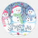 Adesivo Redondo Arte em aquarela de bonecos de neve da divertida e