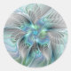 Adesivo Redondo Arte fractal de fantasia de borboleta azul abstrat