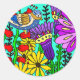 Adesivo Redondo Arte popular de aves e flores