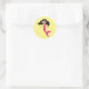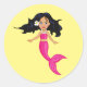 Cartoon de arte rosa de sereia de uma gira-sereia com cabelo preto e uma cauda cor-de-rosa sobre um fundo de cor personalizável.