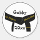 Personalize as ruas de Artes Marciais 1 com o nome do seu artista marcial e no ano em que ganharam o seu primeiro cinto preto Dan. Esses adesivos personalizados de artes marciais apresentam uma fotografia digitalmente aprimorada de um cinturão preto de artes marciais com um bar ou faixa de ouro.