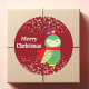 Um adesivo vermelho redondo com coruja verde de Natal e flocos de neve para divertida festa de Natal. Cartaz de Natal Feliz para etiquetas de festas e artesanatos. Torne a festa de Natal divertida e frágil com distribuição de presentes adesivos para crianças. O texto personalizado está disponível para ajustado no estilo de fonte. Visite minha loja para mais produtos desse tipo. Ligação: https://www.zazzle.com/store/merry_xmas_store
