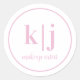 Um design elegante, em rosa e branco, apresentando um logotipo de monograma personalizado e artista de maquiagem / profissão em tipografia elegante. Este design personalizado é perfeito para a artista de maquiagem profissional ou cosmetologista. Use para selar sacos de produtos, kits de etiquetas ou embalagens de marca. O texto do monograma inicial e o nome da profissão são fáceis de personalizar para qualquer nome ou título.