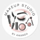 Adesivo Redondo Artista Makeup Lashes Mascara Lipstick Rosa Dourad