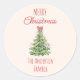 Como podem ver, a design apresenta uma mão verde única, feita e desenhada, uma árvore de arco de Natal esquisita. Com a mão vermelha escrita tipografia do feliz Natal e o nome da família manuscrito em verde.