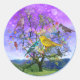 Árvore do palito da felicidade, pássaros em uma árvore, coração feito de folhas coloridas de carvalho no fundo, lua de cheio no céu
