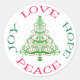 Aqui está um adesivo bonito para uso versátil durante o Holiday Season. Apresenta uma imagem decorativa vermelha e verde de uma árvore de Natal no meio. A árvore é cercada pelo texto Love Hope Peace Joy em vermelho e verde.