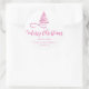 Adesivo Redondo Árvore de Friso Rosa, Manchete de Natal Feliz