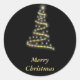 Uma espantosa árvore de Natal dourada brilha contra um fundo preto elegante, exuberando elegância e alegria de férias. As palavras "Feliz Natal" na tipografia festiva completam esta composição encantadora, fazer-a um perfeito design de Natal.