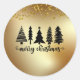 Adesivo Redondo Árvore de Natal Dourada Glitter Feliz