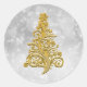 Adesivo Redondo Árvore de Natal Dourada num fundo prateado