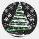 Adesivo Redondo Árvore de Natal Verde Floco de Neve Branco Floco d