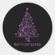 Adesivo Redondo Árvore Feliz de Natal, Preto Metálico, Rosa