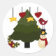 Adesivo Redondo Árvore Feriada de Natal Fresca Neve Estrelas de Pá