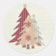 Essas adesivos rústicos country ou selos de envelope têm três árvores de Natal ou de Férias em cores suaves de xadrez burgundy, bege e verde com flocos de neve e pontos em duas das árvores que também têm estrelas douradas no topo. O fundo é uma trama de linho claro.