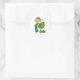 Essa garota de vara está pegando as muitas folhas caídas da temporada do outono.