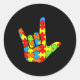 Adesivo Redondo ASL Love Sign Language Autismo Dar Consciência